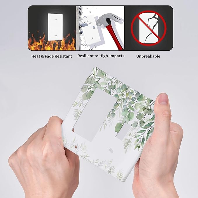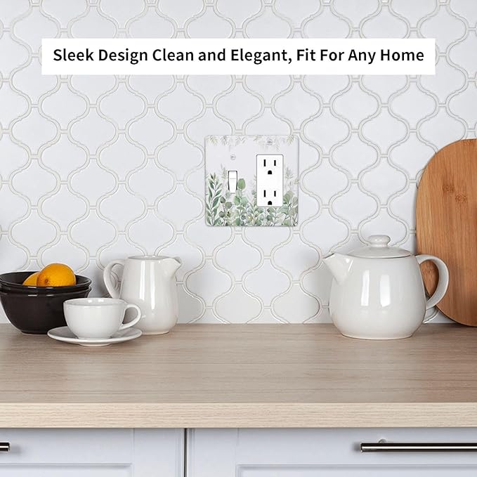 Green Eucalyptus Rustic Botanical Plant Leaves 2 Gang Single Toggle Rocker Combination Boho Light Switch Covers Decorative Wall Plate Cover Electrical Faceplate Switchplate for Country