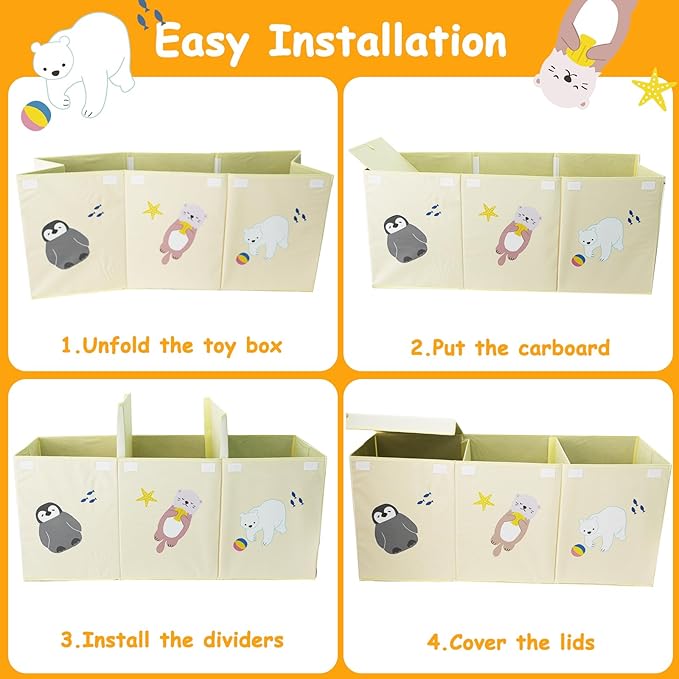 - 【Adjustable Size】Contains 2 detachable partitions, you can freely adjust the interior space, and there are up to three storage spaces for three kinds of toy classification. Help children learn to store better, and share happy time with parents.