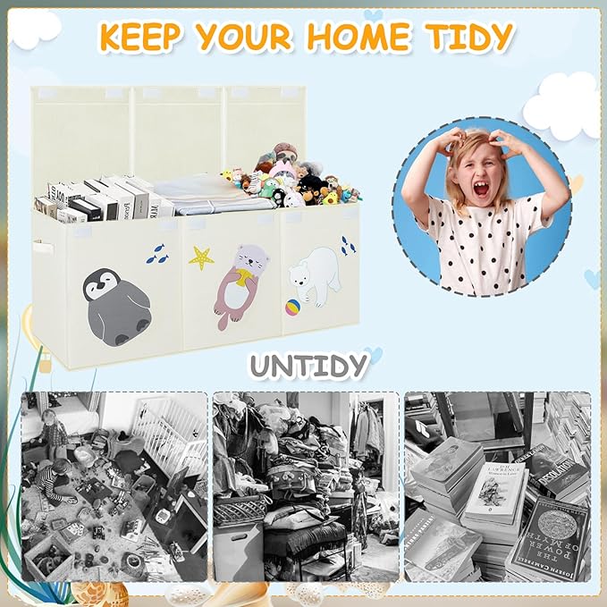 - 【Durable & Foldable】Its a foldable toy organizers and storage with flip-top lid,Toy storage made from oxford cloth fabric and thickened cardboard, which is durable, breathable and waterproof.