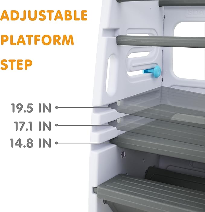 - Enhanced Safety for Toddlers: Crafted from eco-friendly and child-safe HDPE material, this product prioritizes safety for kids. With its double safety rails and anti-slip foot pads, it ensures a secure and stable platform for your little ones.