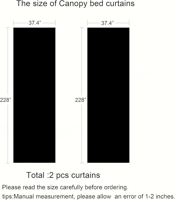 - Package list: Sold as 2 Caopies Bed Curtains Panel(Not including poles and other accessories),you need to buy and make it yourself.