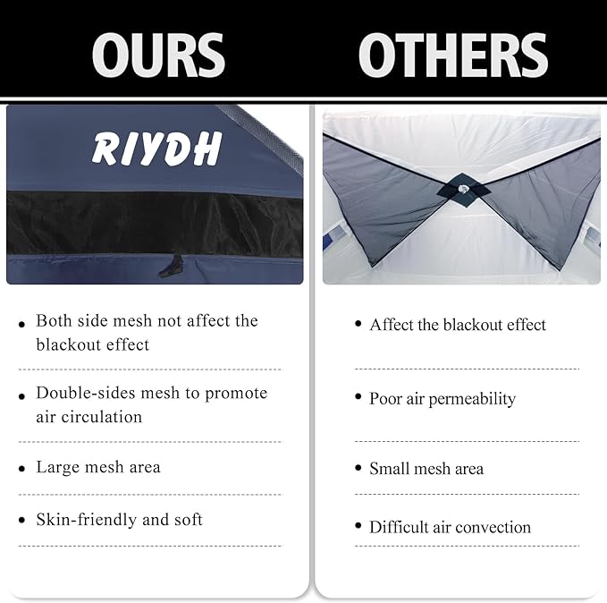• Breathable Unstuffy: The 3 double-sided zippered doors of the bed tent can be fully opened for ventilation. when you closed 3 doors, the mesh on both sides promotes air circulation, keeping you warm without feeling stuffy.