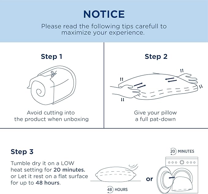 - EASY TO WASH AND MAINTAIN:Our luxury pillow is easy to care for.Just wash your fluffy pillow in cold water and gently tumble dry on low. Remember, no bleach or ironing needed to keep it cozy.
