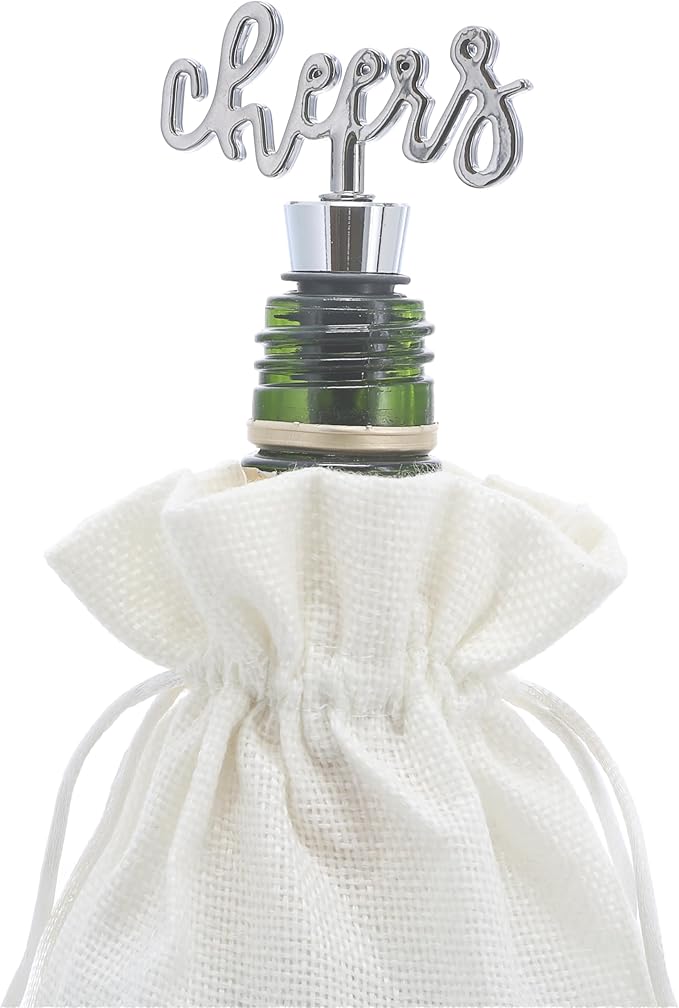 - IN-HOUSE DESIGN: "The Best Wine Is The Wine You Drink With Friends" black text is screen-printed onto the front of the bag, while the stopper features a cursive "Cheers" silver text.