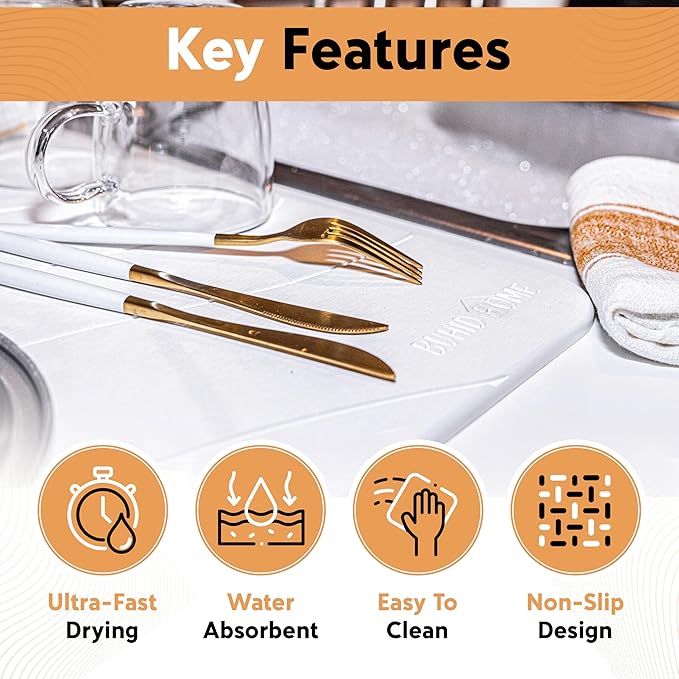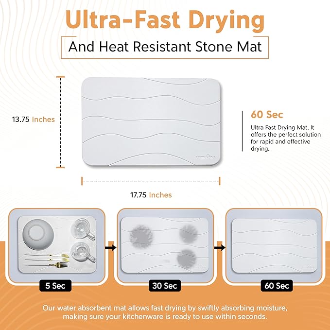- ๐๐ฎ๐๐ ๐ง๐ผ ๐๐น๐ฒ๐ฎ๐ป: Say goodbye to traditional dish drying hassles with our stone mat. A simple wipe with a damp cloth or towel and a quick rinse ensures your kitchen stays hygienic and the mat is ready to use in minutes.