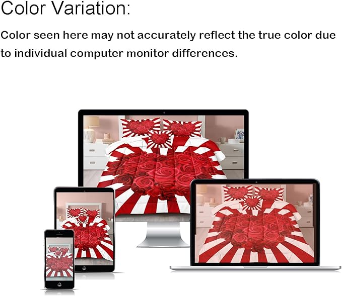 Bedbay Rose Flowers Queen Comforter Set Floral Bedding Set for Girls Teen Red Rose Love Heart Printed 4 Pieces Girls Queen Bedding Set Romantic Lovers Couple Bedding Set (Red Heart,Queen)