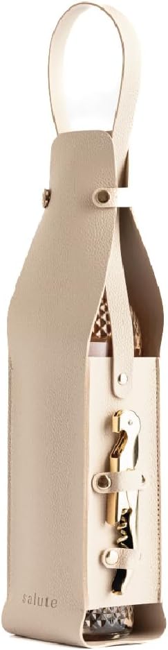Salute NEW Wine Bottle Carrier with Corkscrew | Vegan Leather Tote Gift Bag Corporate Gift idea Picnic Travel Tastings Wine Gift Beach Party BYOB Restaurant Valentines Day (Cream)