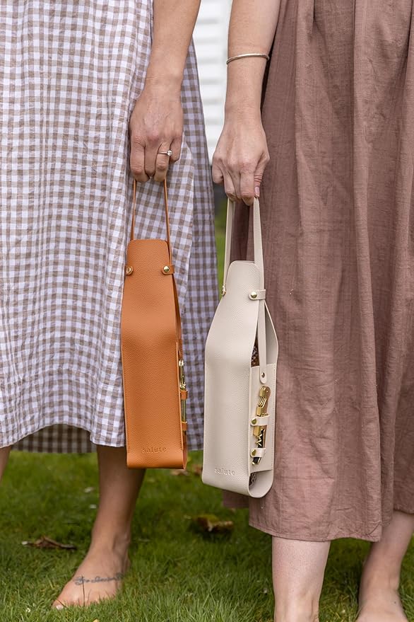 - Our beautifully crafted vegan Leather Wine Bottle Carriers are lightweight, durable and compact. They come with our signature gold corkscrew opener.