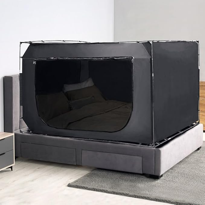 - Excellent Sleep Experience: Rengue bed tent is more sturdy than other pop up bed tent on the market; fiber poles help this King bed tent retain its shape and be more stable; Use it with your existing mattress to create your own private space for a warm and comfortable sleep; Experience a peaceful and restful night's sleep with the bed tent's 70% effective shading, which effectively blocks out light and noise, perfectly for a peaceful and uninterrupted night's sleep