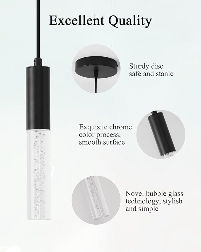 - Upgrade Your Ambient Lighting: Elevate any room with our exquisite LED pendant light. It features an aluminum tube with an electroplated paint surface, a high light transmission acrylic column lampshade, and a classic black spray paint finish