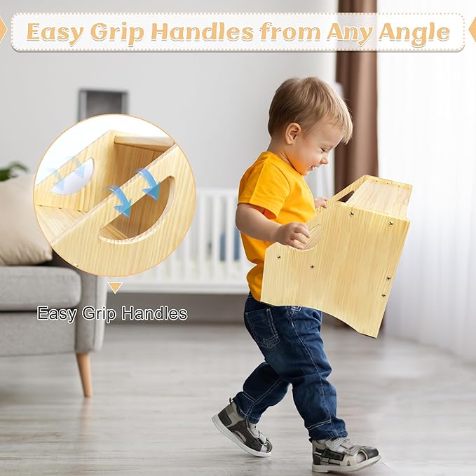 - PROVIDE SAFETY AND CONVENIENCE FOR KIDS:The top of step stool for kids adds a unique non-slip strip design that allows children to stand more stable on top of the step stool with handle to ensure that children do not slip. Also increased the side armrests to help children more easily on the potty step stool. This makes the two step stool more stable and convenient.