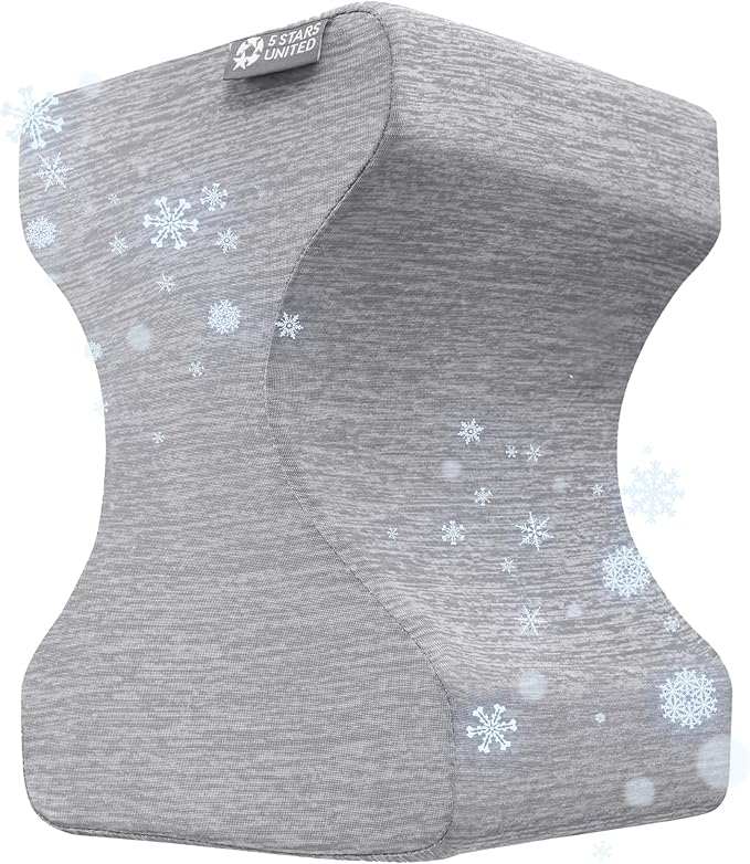 5 STARS UNITED Knee Pillow for Side Sleepers - Cooling Cover - Memory Foam Leg Pillow for Side Sleeping - Between Legs Pillow for Hip and Lower Back Pain - Sciatica Pain Relief