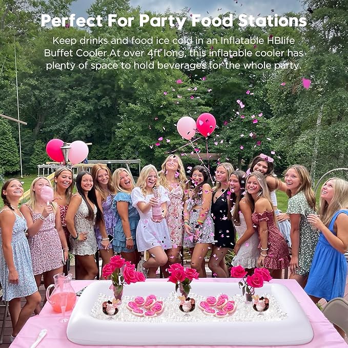 - SAVE TIME: No need to worry about how to keep your salads, fruits, dips, and drinks fresh and cool when you are throwing a party, camping, having a picnic, luau, BBQ, large gathering, or other special occasions with family, friends, or co-workers. This Inflatable Serving Table is here to save the day!