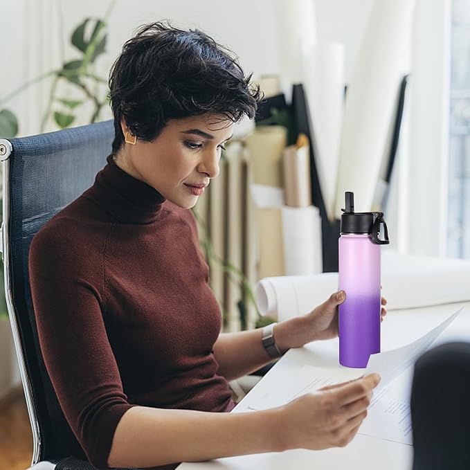 - VACUUM INSULATION DOUBLE WALL: The water bottle is designed with vacuum insulation, which can keep your drink warm for 12 hours and cold for 18 hours, perfect for you to use at home or take with you when you go out for traveling.