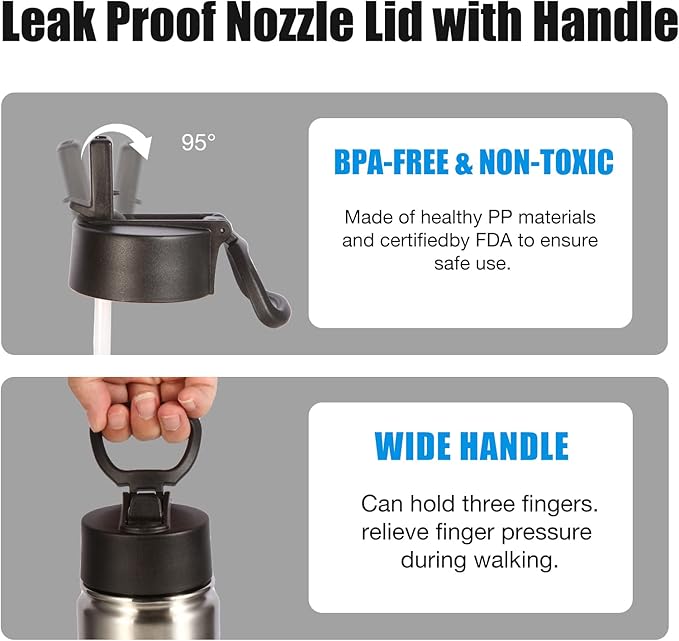 - CONVENIENT BOTTLE DESIGN: The lid is designed with a straw lid, flip-top spout makes it easy to drink, no leakage when fully closed, foldable handle, slim bottle can be easily put in your school bag, perfect fit for car cup holder, wide spout for easy refilling of water or adding ice cubes.