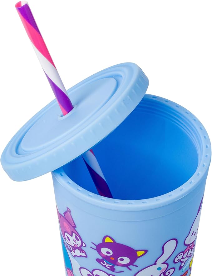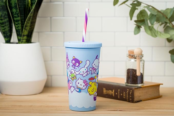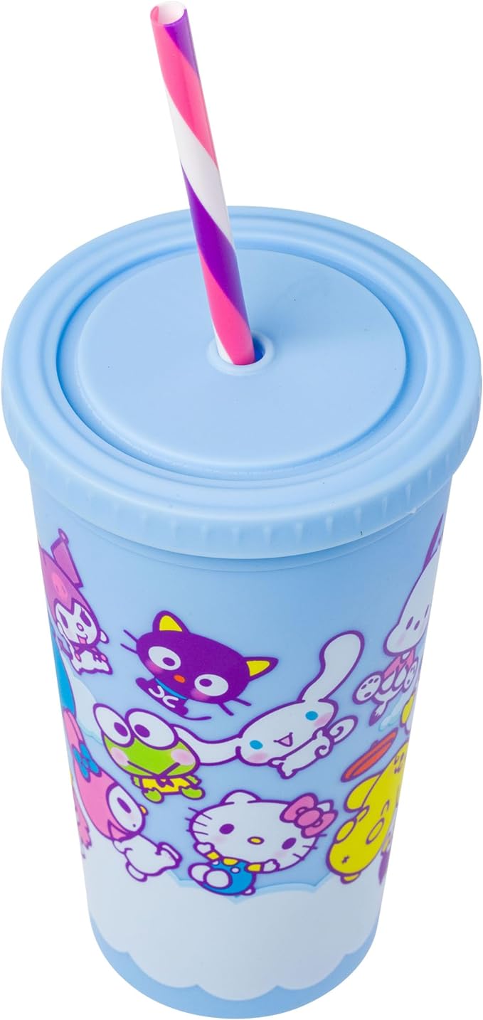 - SANRIO HELLO KITTY AND FRIENDS PLASTIC TUMBLER: Sanrio Hello Kitty and Friends 20-oz Tall Plastic Tumbler with Straw with your favorite characters floating on clouds in the sky.