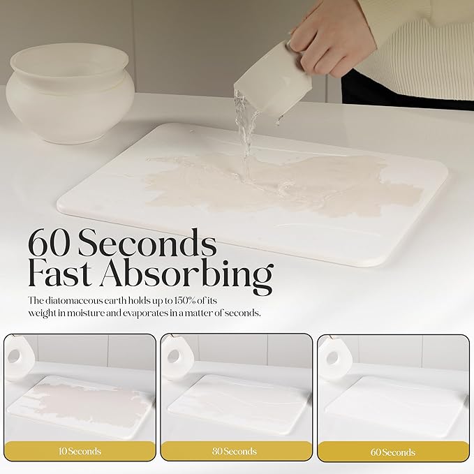 - Utility Meets Elegance - This stone Drying mat for kitchen counter is crafted from super absorbent diatomaceous earth that holds up to 150% of its weight in moisture, this luxurious white stone tray is as beautiful as it is fast drying.Perfect as a stone drying mat for kitchen counter.Stone Dish Drying mat.