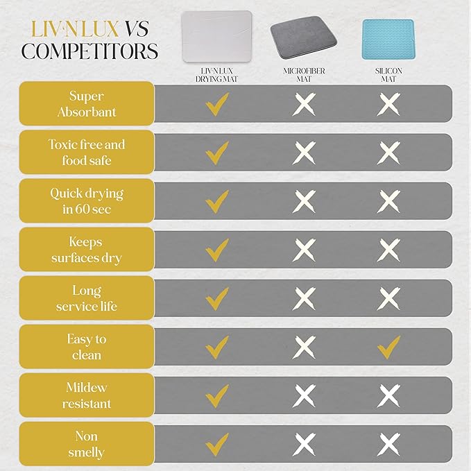 - Safe Materials - Indulge in guilt-free luxury with our eco-conscious diatomaceous earth mat. Rest assured knowing your dishes and utensils are resting on a natural and food-safe environment.An excellent choice for a stone drying mat for kitchen counter.