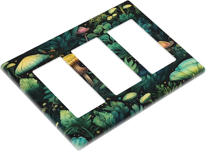 Green Dark Forest Mystical Mushroom 3 Gang Rocker Light Switch Covers Triple Outlet Wall Plate Decorative Switchplate Cover Faceplate GFCI for Country Bathroom Bedroom Kitchen Decor
