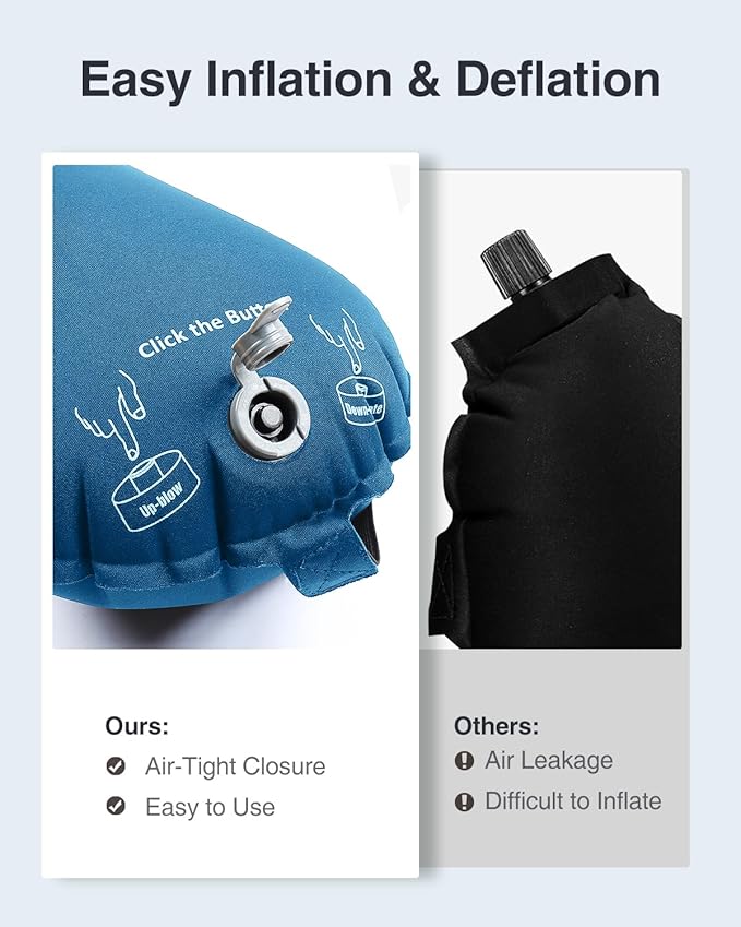 - 【Upgraded Valve Design】: Compared to rotary air valves, our inflatable travel pillow uses the Press Type air valve, which makes inflation and deflation easier and there is no air leakage when you using this lumbar support pillow.