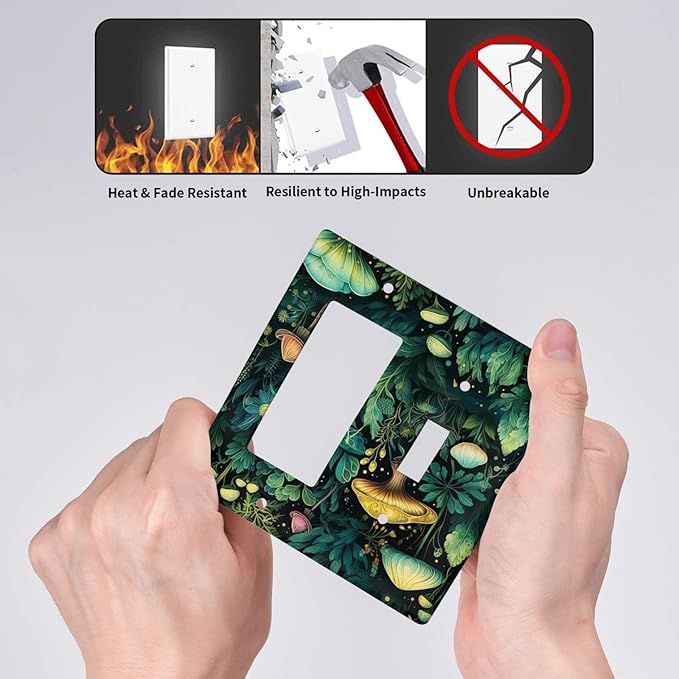 Green Dark Forest Mystical Mushroom 2 Gang Single Toggle Rocker Combination Light Switch Covers Wall Plate Cover Electrical Faceplate Decorative Switchplate for Country Bathroom Bedroom Decor