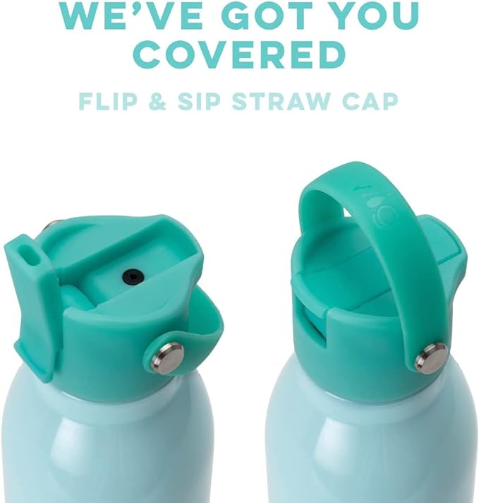 - EASY CARRY HANDLE WITH INNER STRAW. The all new Flip + Sip cap has a built in straw, handle, and is completely leak proof.