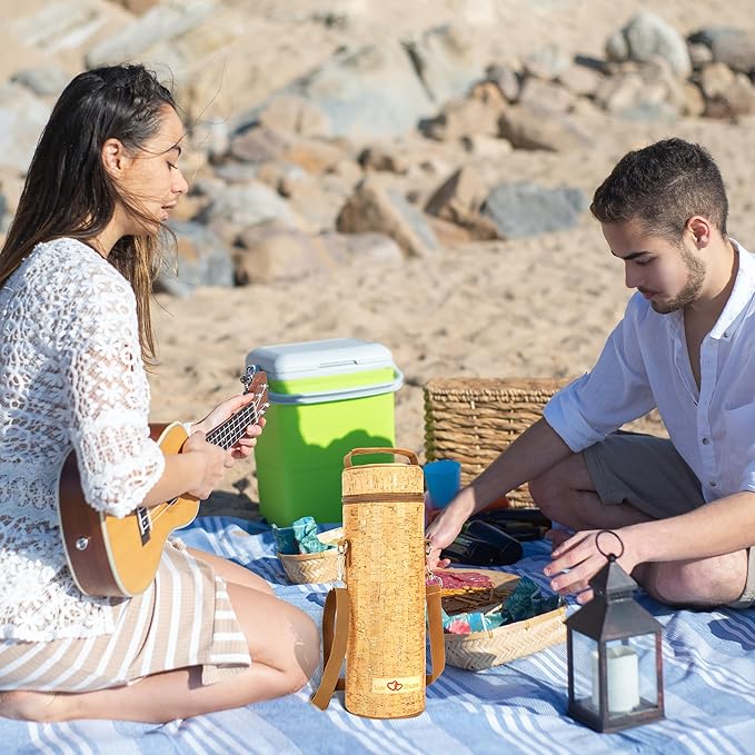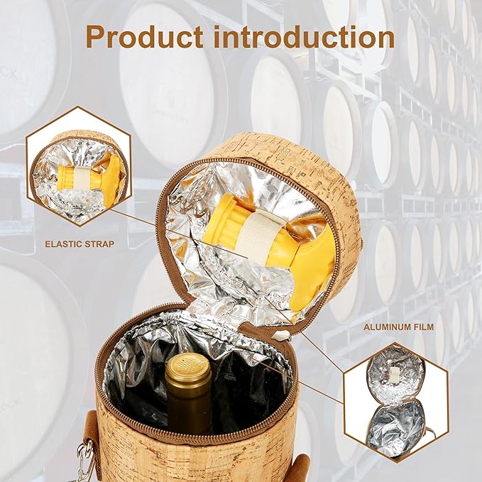 - Insulated Wine Bag: The wine tote bag is made of 3 sturdy layers. The first layer of it is cork which Wrinkle resistant and wear-resistant, suitable for travel and camping. The inter-layer is insulated PE foam can maximum heat preservation. The third layer is insulated AL layer, leak-proof and easy to clean.