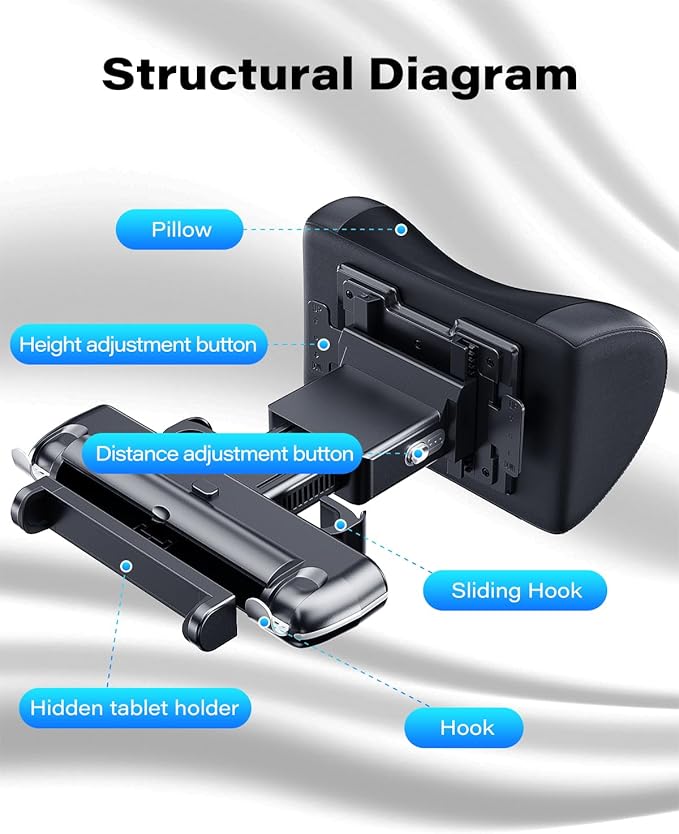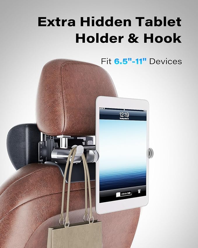 - 【Multi-Function, Hidden Hook and Tablet Holder】This Headrest pillow is designed to be very practical. There are two convenient hooks on the back of the device, allowing you to hang bags and other items. In addition, it can easily extend the hidden holder for your mobile phone or tablet, allowing passengers in the back seat to relax and entertain during the trip.