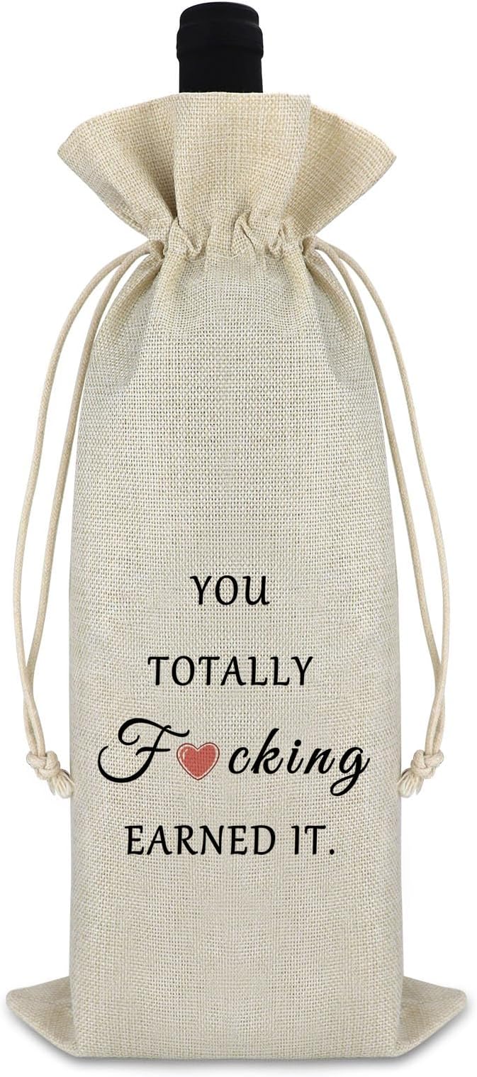 New Job Gift Funny Wine Bags Inspirational Job Promotion Gift for Women Men Coworker Burlap Drawstring Wine Bag Friendship Congratulations Gift for Friends Colleague Birthday Christmas Labor Day Gift