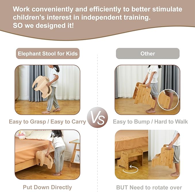 - 【3 Reasons for Choosing us】 Cute enough to to win kids favour - More sturdy stable and safe than plastic - More practical handles than other wooden stools as pictures described.