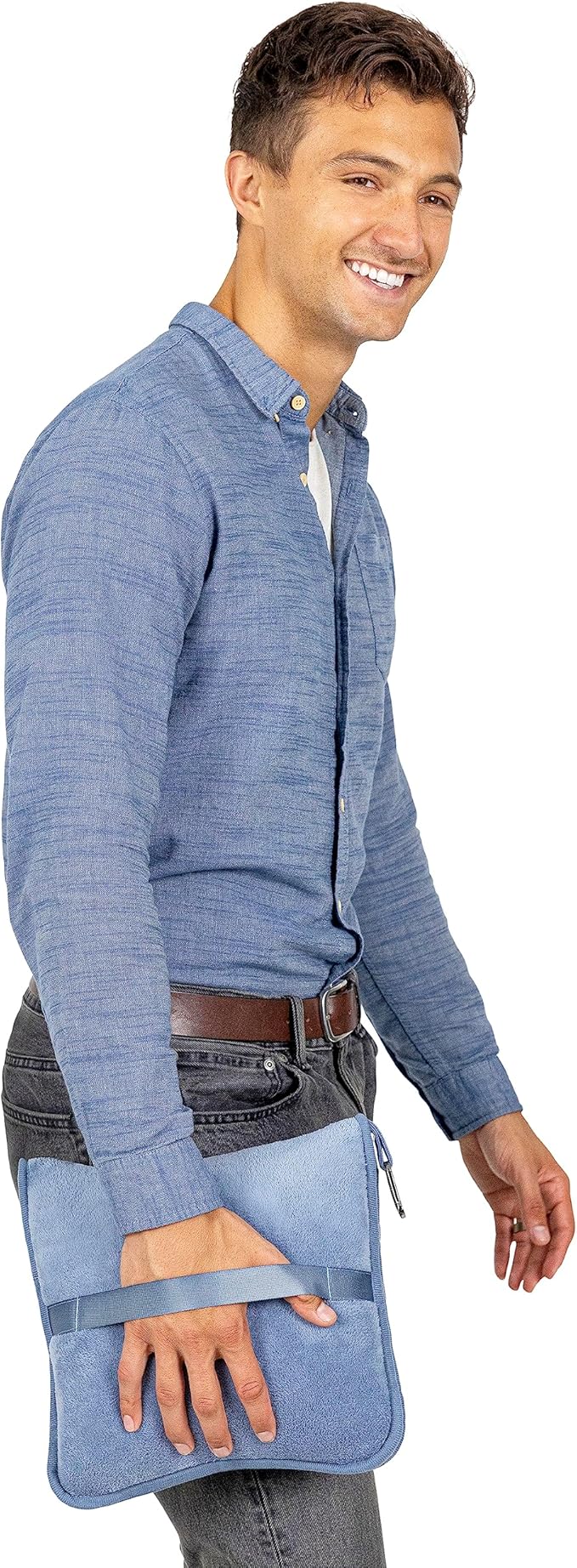 BlueHills Premium Soft Long Travel Blanket Pillow for Tall Airplane Flight Essentials Large Compact 2 in 1 Airline Blanket Throw Packable Warm Plane Traveling Accessories Grayish Blue T056
