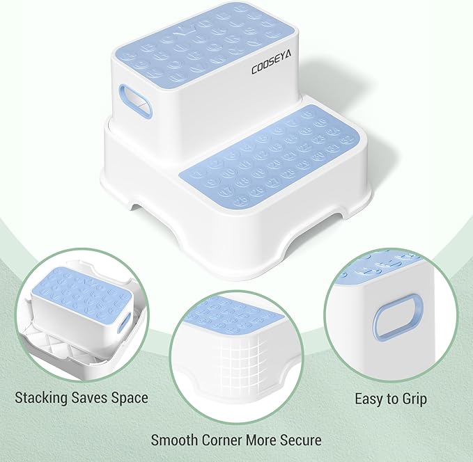 - Double-Layer Structure: The double-layer step stool design offers additional height, enabling young children to reach higher places with ease, such as sinks, toilets, or the tops of cabinets, helping them develop independence and confidence.