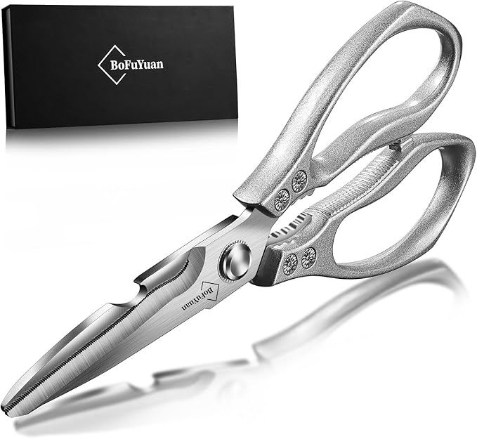 Kitchen Shears for Food Heavy-Duty: Multipurpose Kitchen Shears for Cutting Chicken, Bone, Meat, Food, (9'' Silver)