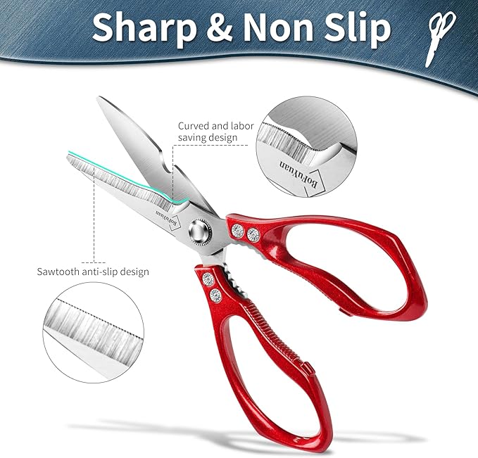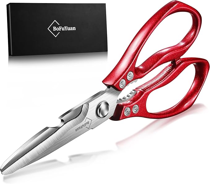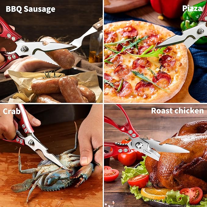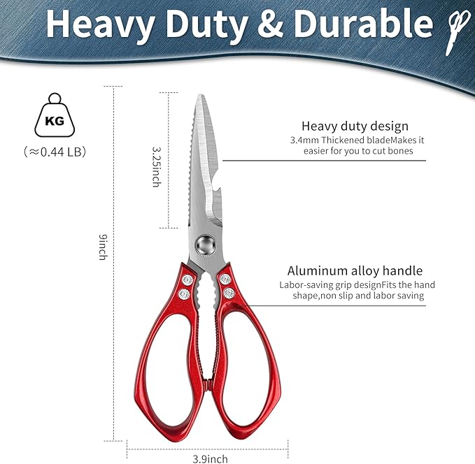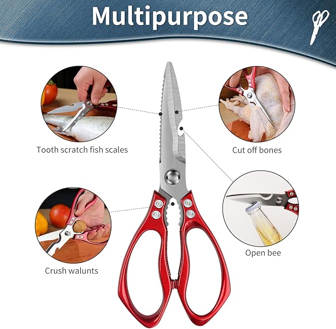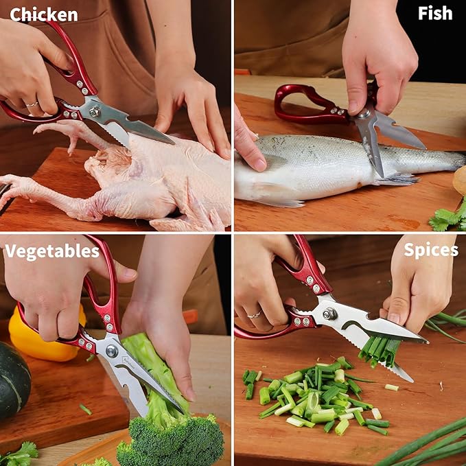 Kitchen Shears for Food Heavy-Duty: Multipurpose Kitchen Shears for Cutting Chicken, Bone, Meat, Food, (9'' Red)