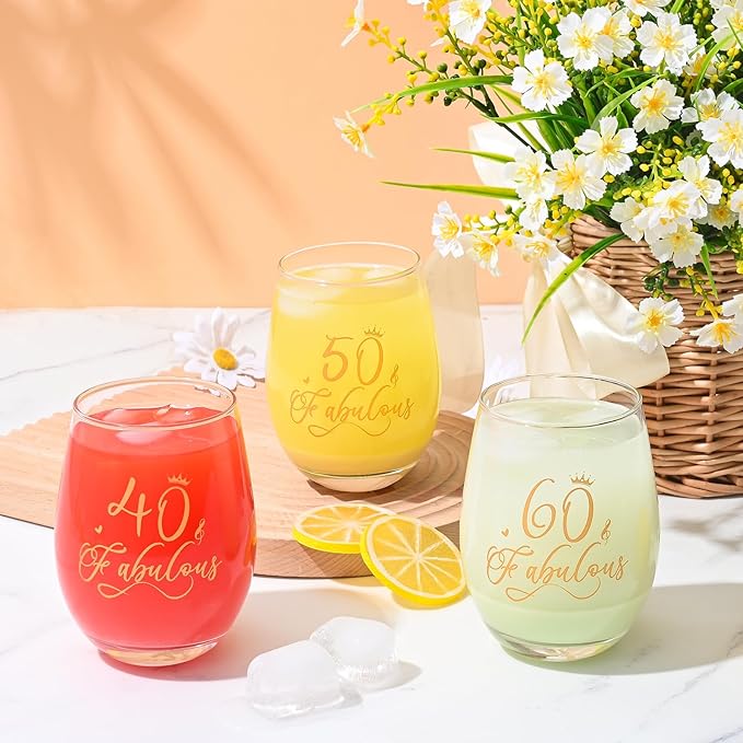 - 50TH BIRTHDAY GIFT: Looking for the Ideal happy 50th birthday gifts for women? Our 50 & Fabulous stemless wine glass is worth your choice! High quality and an elegant design makes this wine glass a memorable birthday present that will they absolutely love it!