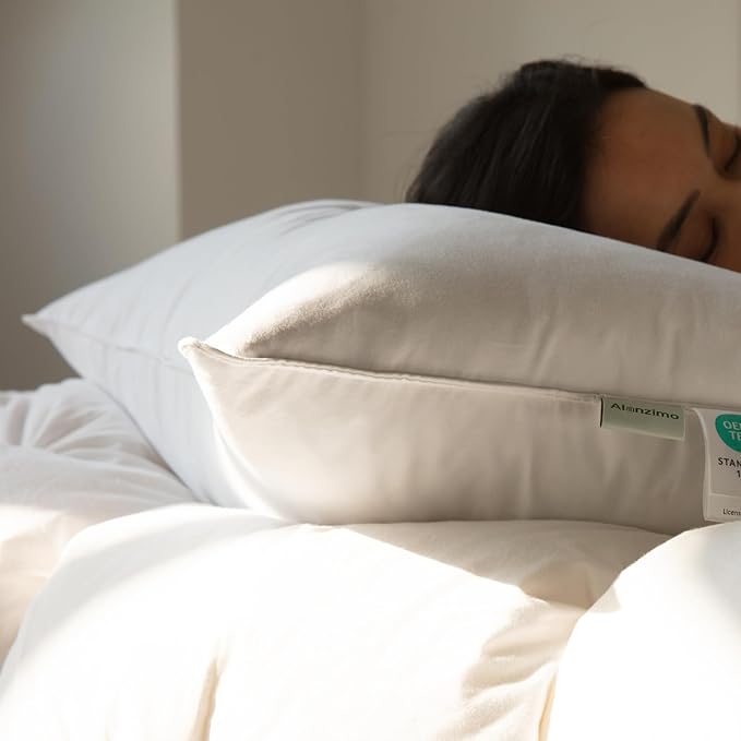 - Get Nice Sleep-- This down feather pillows encased in a 600TC exquisite organic cotton percale that is OEKO certified for its safety. Perfect for those with soft skin, keeping you cooling and comfort all night long. Enjoy a comfortable and restful sleep with our hotel pillow without any feather poking or smell