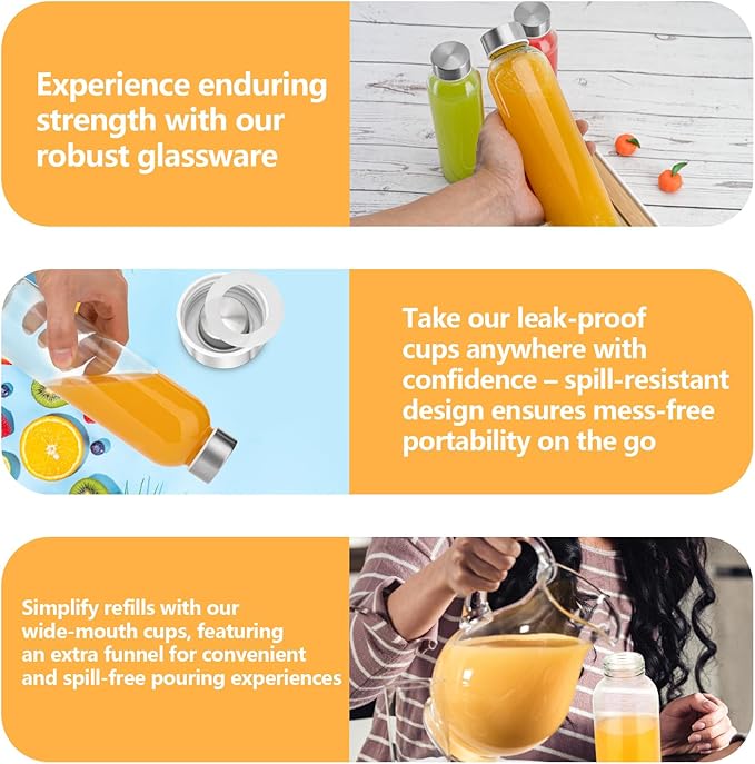 - 【Versatile Design】Unleash the potential of your hydration routine with our dual-purpose glass bottles, perfect for both water and juices