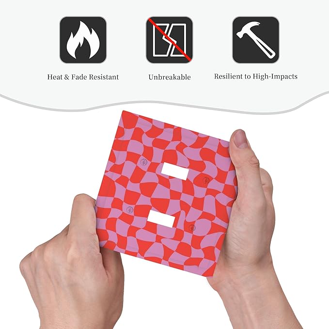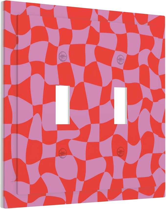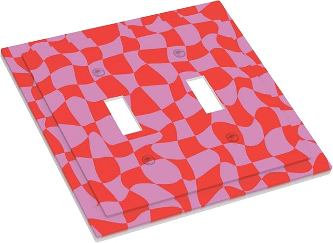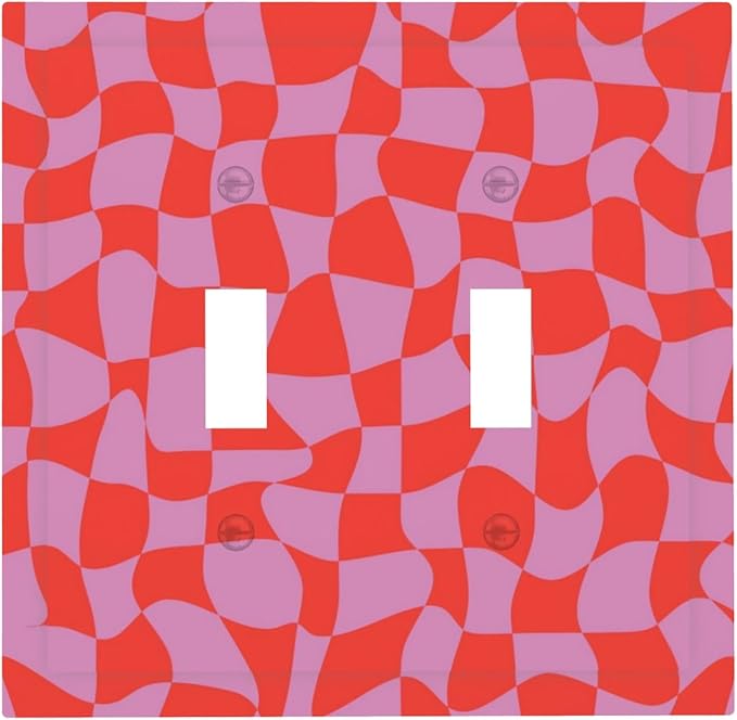 Groovy Check Double Toggle Light Switch Covers 2 Gang Wall Plate Dual Decorative Switchplate Electrical Faceplate for Bathroom Country Kitchen Bedroom Decor, 4.9" x 5"