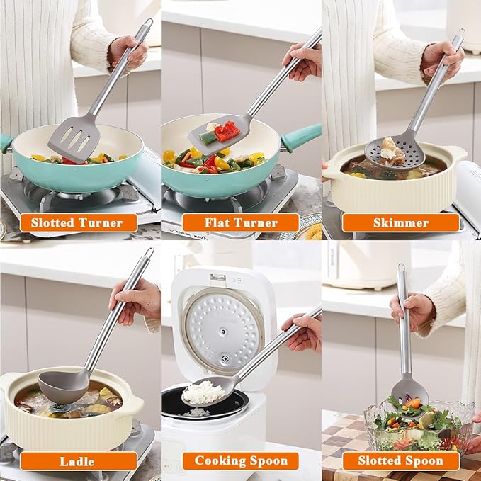 - Durability and strength combined: Each piece of kitchenware has been carefully designed and processed to withstand significant force without deformation during use. Whether stirring, cutting or stewing, it can meet your needs for durability and strength.