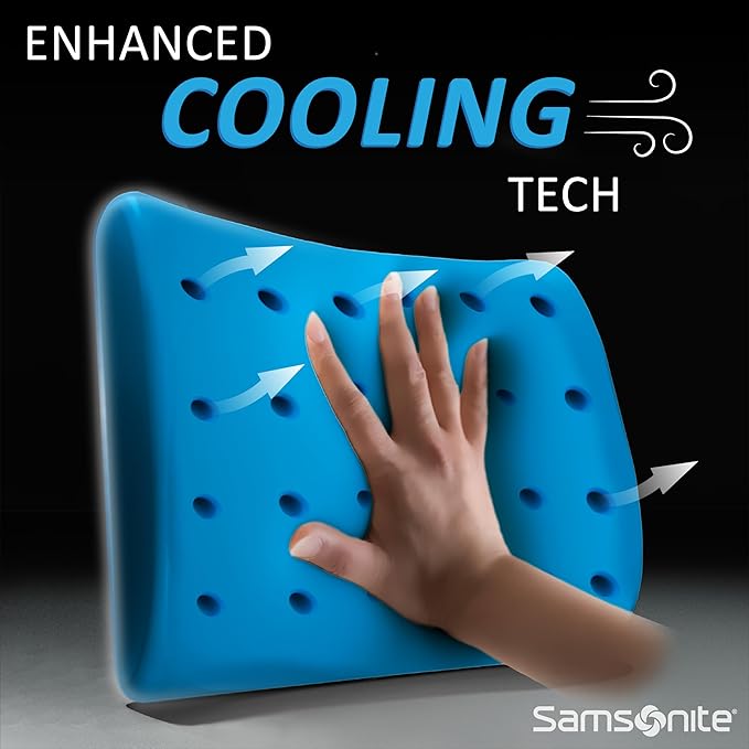 - COOLING COMFORT - Elevate your seating experience with the Samsonite Lumbar Pillow featuring infused gel technology. The integrated gel provides a refreshing cooling effect, ensuring a comfortable and soothing support for your lower back, making it perfect for long hours of sitting.