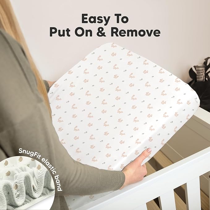 - Easy On, Easy Off - Our fitted mini crib sheet uses SnugFit Tech, a smart fabric knit that allows the fabric to stretch when you are fitting or removing the playard crib sheets neutral. No more struggling with rigid fabric!
