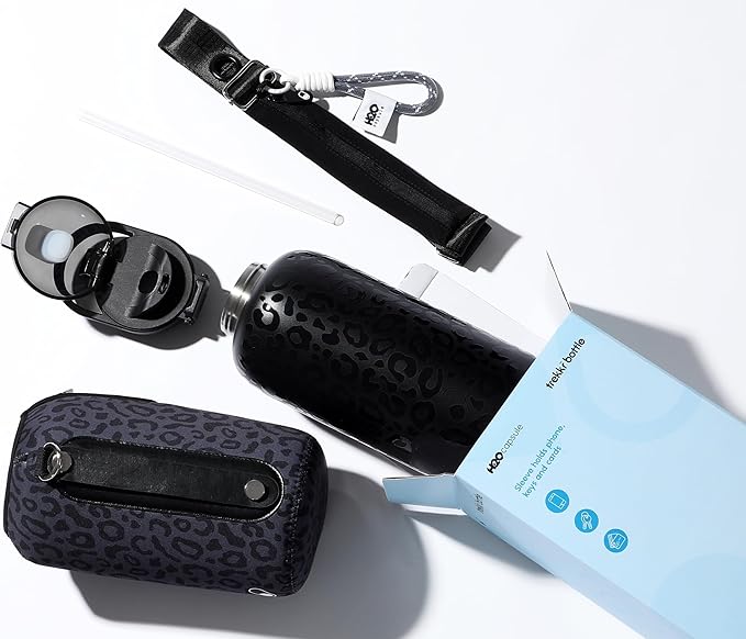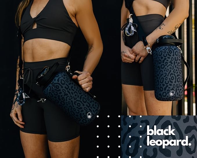 H2O Capsule Half Gallon Insulated Water Bottle With Straw - Stainless Steel Thermos Water Bottle With Sipping/Chugging Lid & Shoulder Strap For Storage - 64 oz Vacuum Flask, Hot Cold (Black Leopard)