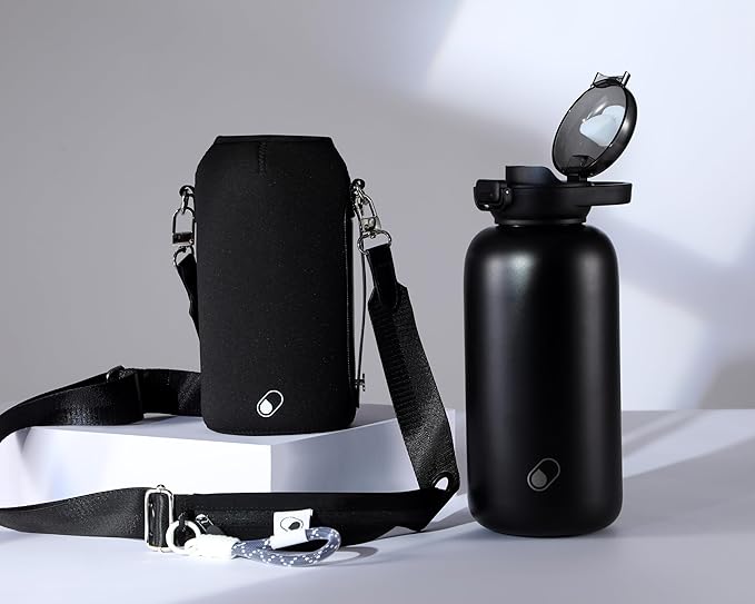 - Storage Sleeve for On-the-Go Convenience: Our large metal water bottle comes with a thoughtfully designed sleeve for maximum portability. Equipped with a leather hand strap for easy carrying in one hand and a shoulder strap that doubles as a storage compartment, this sleeve is a game-changer. Plus, this water flask includes a storage bag, metal buckle rings, and a nylon cord for hanging sunglasses. Need a crossbody bag? Simply connect the hooks on the shoulder strap for added versatility.