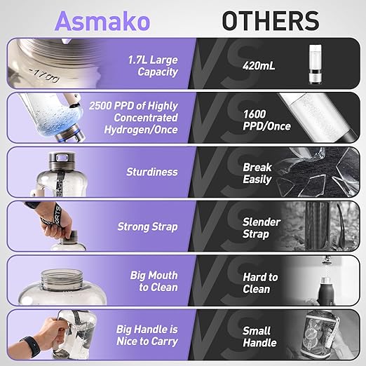 - Many Benefits : Drinking hydrogen water can relieve the oxidation reaction in the body, promote metabolism, enhance immunity, improve sleep. Portable hydrogen water bottle can meet your daily needs