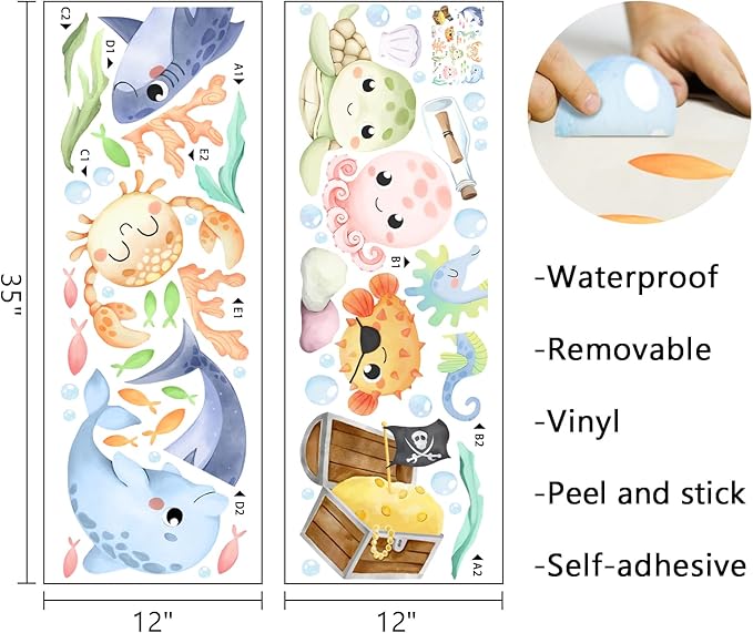 - Nursery Decorations: Our neutral wall decals are designed with various vivid patterns like marine creatures, shark, dolphin, octopus, crab, turtle, sea horse, fish, treasure, coral. These lovely wall decals and stickers are suitable for nursery, preschool, daycare, playroom, classroom, kids bedroom, living room, kindergarten and school. Perfectly DIY a magic space for baby, infant, toddlers, kids, children, teens, teenagers, girls and boys