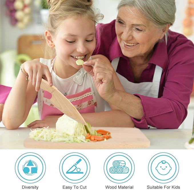- Unique Design: The wood kids knife/toddler cooking set adopts an integrated handle design, the child's strength can be completely applied to the blade, which is safe and labor-saving. A full range of multipurpose kids knife set for real cooking, great ideal combinations for kids to learn cooking.