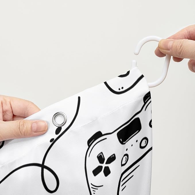AILONEN Gamer Shower Curtain for Boys 60" W*72" H Black Gaming Video Game Bathroom Curtain,Teen Boys Bath Curtain Polyester Waterproof Retro Game Controller Bathroom Curtain with 12 Hooks