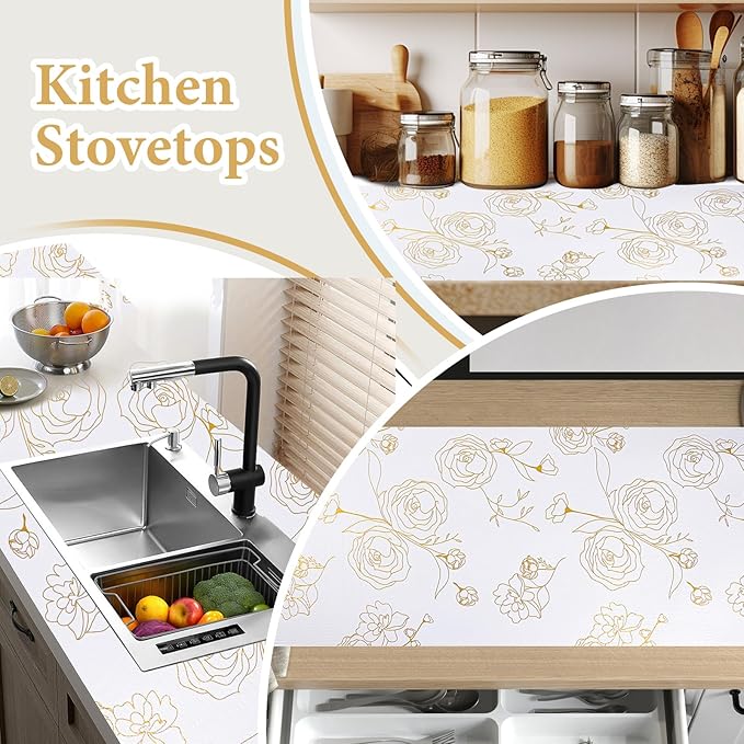 - 【Stylish Golden Pattern】 Stand out with our exclusive golden floral patterns. Designed by top fashion designers, these liners add a touch of elegance to any drawer or shelf. Perfect for both practical and aesthetic needs.
