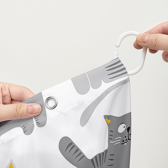 AILONEN Cat Shower Curtain 48" W*72" H Funny Cartoon Cat Grey Printed Bath Curtain Cat Theme Shower Curtain Minimalist Bathroom Curtain Decor Polyester Waterproof Curtain with 12 Hooks