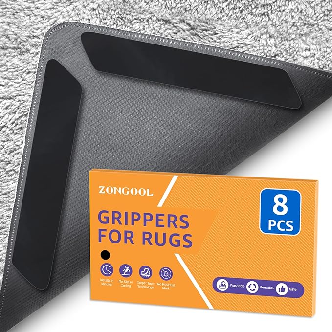 - 🌈【NON SLIP AND CURLING】Slippery rugs are dangerous in any home. ZONGOOL rug tape are working on preventing the rug sliding or rug corners curling, working for any shape of your rugs indoors or outdoors, making your carpet hold down and keep it in place. Voiding slipping accidents and properly solve annoying rug problems.
